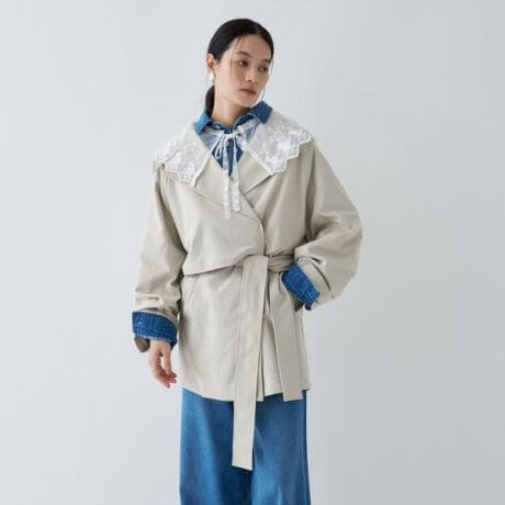 ・ショート丈と程よいゆとり感が今っぽい、トレンド感のあるショートトレンチコート。