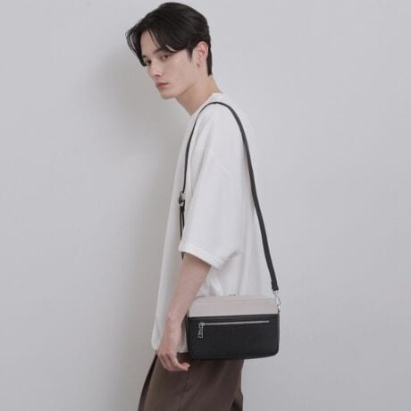 モダンなカラーブロックデザインが特徴の横型ショルダーバッグ。