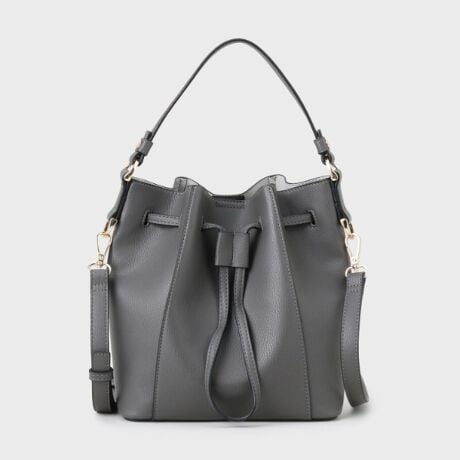 きゅっと口元を絞れる巾着シルエットのショルダーバッグ。