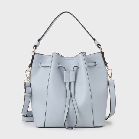 きゅっと口元を絞れる巾着シルエットのショルダーバッグ。
