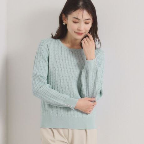 ミニケーブル柄ですっきりきれいめに着られるデザイン。