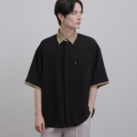 クラシックなクレリックシャツを、現代的なオーバーサイズシルエットと機能的なディテールに仕上げた一枚。