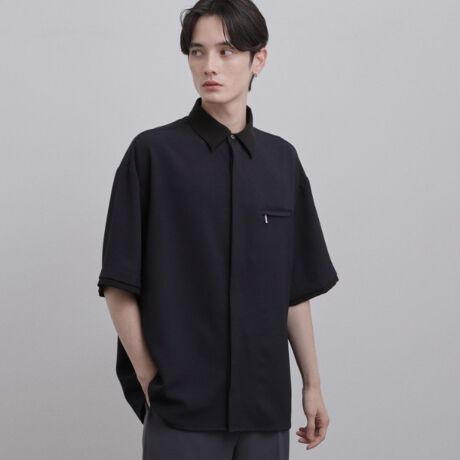 クラシックなクレリックシャツを、現代的なオーバーサイズシルエットと機能的なディテールに仕上げた一枚。