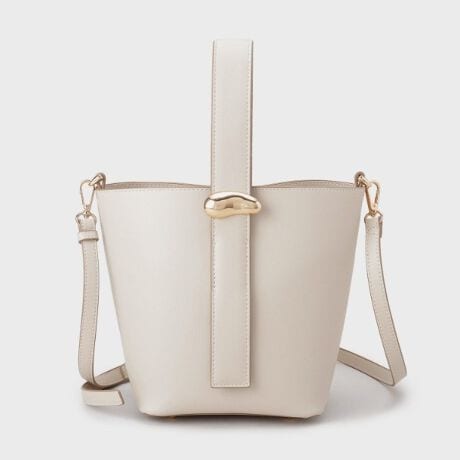 大きめのゴールドパーツがアイコニックなアクセントとなり、ミニマルな佇まいを上品に引き締めます。