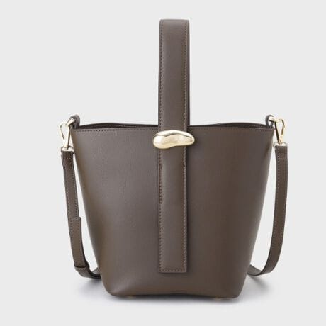 大きめのゴールドパーツがアイコニックなアクセントとなり、ミニマルな佇まいを上品に引き締めます。
