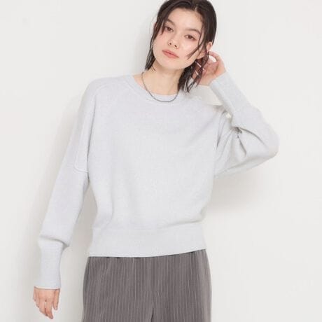 微ラメの艶とジャガードで仕上げた、スエットライクなデザインニット。