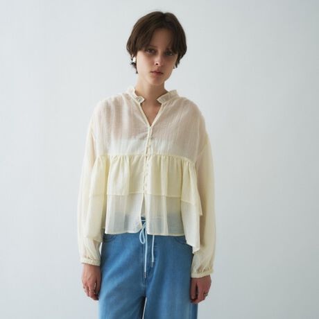 【手洗い可】シアーティアードフリルブラウス
