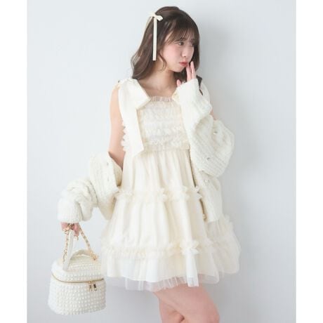 リボンとフリルで仕上げる、とびきりフェミニンなチュールワンピ