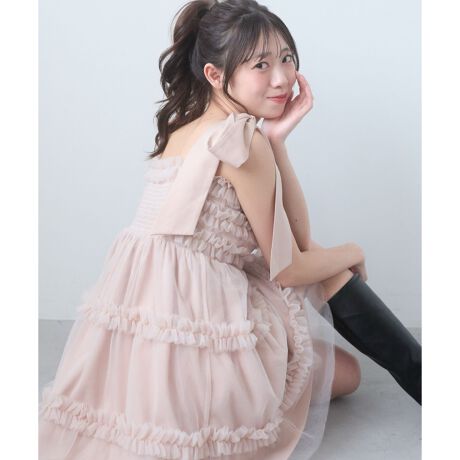 リボンとフリルで仕上げる、とびきりフェミニンなチュールワンピ