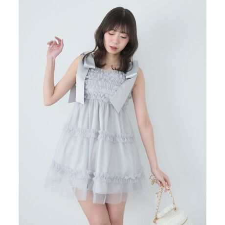 リボンとフリルで仕上げる、とびきりフェミニンなチュールワンピ