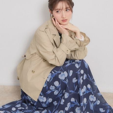 ゴムシャーリングのキャンディースリーブが可愛いハーフトレンチコート。
