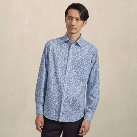 開放感のあるプリント地がシャツ一枚着として映える魅力的なシャツです。