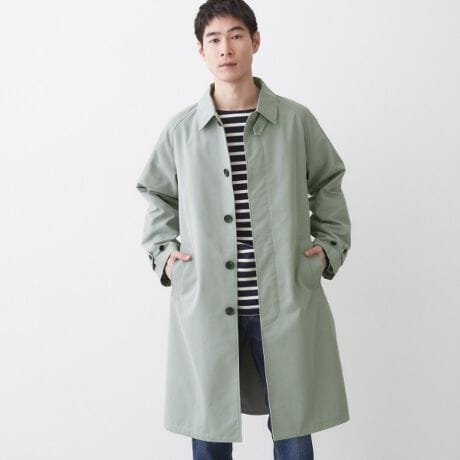 フロントは一見バルカマンコートでバックスタイルのヨークや裾のプリーツがトレンチらしいデザインです。