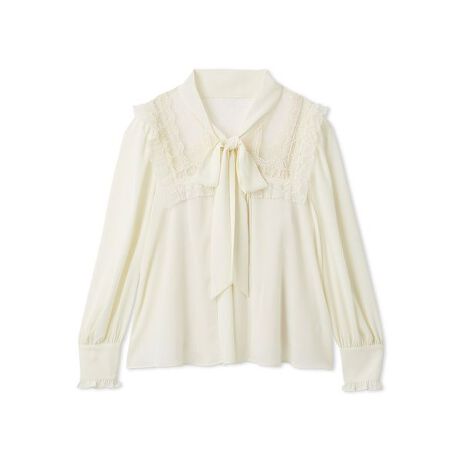 <b>【異素材フリルが奏でるヴィンテージムードのボウタイブラウス】</b>