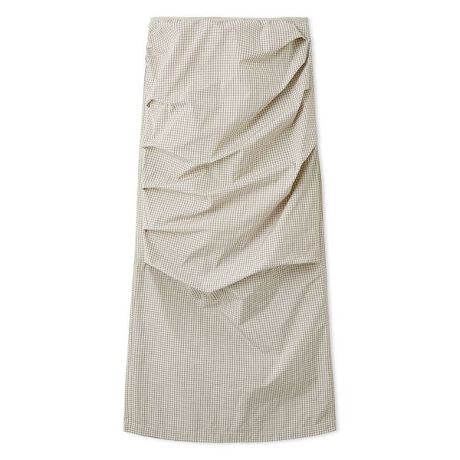 軽量でエアリーなナイロン素材を使用したナロースカート。リップ素材特有の表面感がスタイリングにさりげないアクセントを添えます。