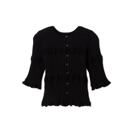 凹凸感のある編地を採用したニットトップスはプルオーバー⇔カーディガンの前後2way仕様。