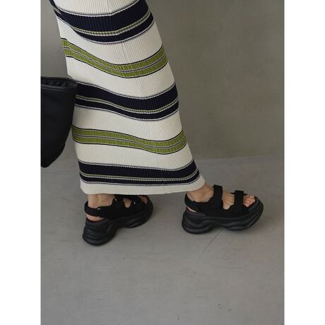 厚底ソールのボリュームサンダルは、トレンド感と軽さを兼ね備えたシューズ。本体はライクラ素材を使いスポーティーに仕上げ、取り外し可能なリボンモチーフもセットでついているので、コーディネートや気分に合わせて付け替えが可能です。