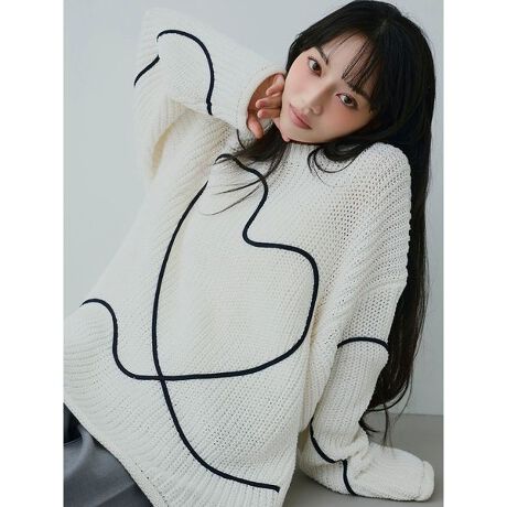 トップス全体には、emmiらしい曲線を活かし、コードで描いたアート調のハートモチーフをあしらい、キャッチーな遊び心をプラス。