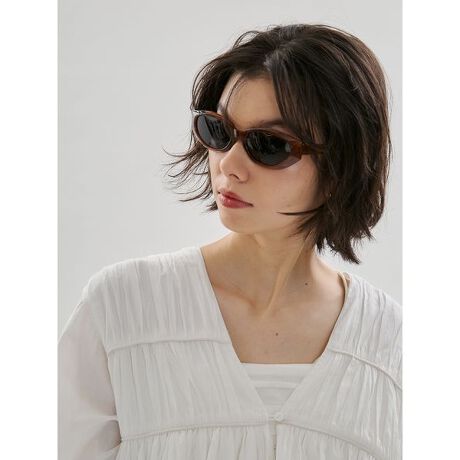 サイドがやや跳ね上がった印象のオーバルフレームサングラス。よりトレンドでおしゃれ感のあるアイテム。カラーもベーシックなブラウンと、アイボリー、クリアと差し色も展開。夏の主役らしいサングラスです。