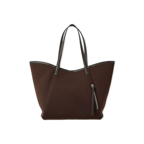 ネオプレーン素材のトートバッグ。A4が入るビックなサイズ感と軽さを追及。合皮と組み合わせることでスポーティーながら、キレイ目な印象に。しっかりとした底板を入れているので形が崩れにくいです。底板を外すことも可能。お仕事バッグやママバッグ、1泊旅行などにもおすすめです。ネオプレーンはスポンジ素材のため、雨は弾きませんが、裏地に撥水加工を施しており、荷物は濡れにくい工夫もうれしいポイント。