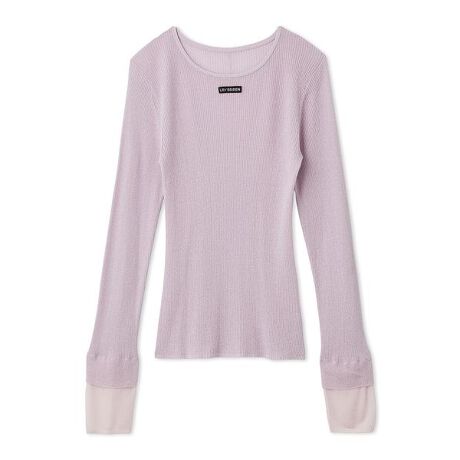 「LILY BROWN」のロゴニットテープが視線を集める、存在感のあるリブニットトップス。透け感のある細リブ編みにラメをプレーティングすることで、ベーシックでありながら華やかさとトレンド感を兼ね備えた一枚に仕上げました。袖口にはレイヤード風ディテールをプラスし、さりげない個性が「LILY BROWN」らしいスパイスを添えます。伸縮性が高く身体に美しくフィットしながらも快適な着心地を叶え、1枚でのミニマルな着こなしはもちろん、ジャケットやワンピースのインナーとしても活躍。様々なスタイリングに寄り添う万能トップスです。