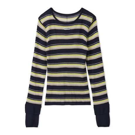 「LILY BROWN」のロゴニットテープが視線を集める、存在感のあるリブニットトップス。透け感のある細リブ編みにラメをプレーティングすることで、ベーシックでありながら華やかさとトレンド感を兼ね備えた一枚に仕上げました。袖口にはレイヤード風ディテールをプラスし、さりげない個性が「LILY BROWN」らしいスパイスを添えます。伸縮性が高く身体に美しくフィットしながらも快適な着心地を叶え、1枚でのミニマルな着こなしはもちろん、ジャケットやワンピースのインナーとしても活躍。様々なスタイリングに寄り添う万能トップスです。