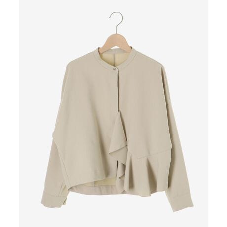 [型番:3562075830]《WEB限定アイテム》アシンメトリーにあしらったフリルが印象的な、ブラウス感覚で着られるブルゾン。程よくハリのあるしっかりとした素材で、一枚でも軽い羽織りとしてもお使いいただけます。スタイリングに動きと表情をプラスしてくれる、主役級のアイテムです◎
