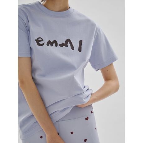 胸元に手描き風のemmiロゴをあしらった、ベーシックで着回し力抜群のTシャツ。