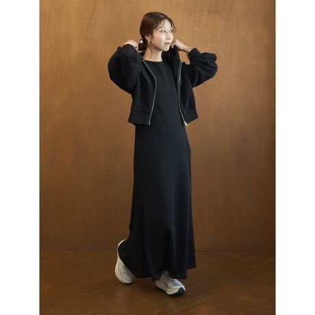 セットのジップアップフーディーはクロップド丈で、スタイリングのバランスが取りやすく、単品使いでも活躍する万能アイテム。