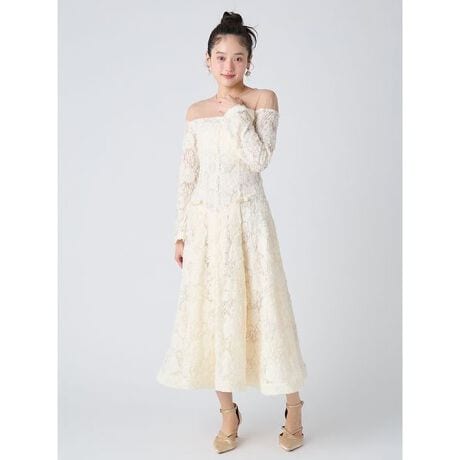 <b>【シアー×立体フラワーで魅せるツイルボンディングドレス】</b>