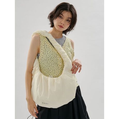 エアリーで軽やかな質感が魅力の、表情豊かなリップル組織を使用したショルダーバッグです。薄手の素材に中わたを入れ、全体にギャザーを寄せることで、丸みのある柔らかなフォルムに仕上げました。長めのショルダーで肩掛けも斜め掛けもOK。コーディネートの幅が広がり、毎日のスタイリングに取り入れやすいアイテムです。