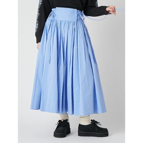2WAYで楽しめるデザイン性の高いシャツスカート。ウエストのレースアップを腰で結べばスカートとして、肩で結べばジャンパースカートとして着用でき、気分やスタイリングに合わせて表情を変えられます。前の紐をホルター風に、後ろの紐を腰に結ぶなど、紐アレンジ次第でさらに幅広い着こなしが楽しめるのも魅力。レースアップでサイズ調節が自在にできるため、体型やレイヤードに合わせやすいのも嬉しいポイント。同素材のLily Bearシャツ(品番LWFB261087)とのセットアップコーデもおすすめで、統一感のある華やかなスタイルに仕上がります。