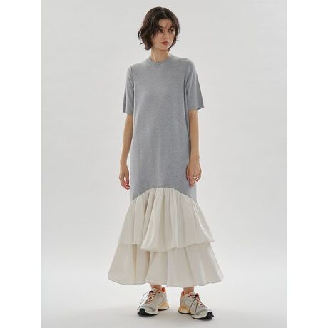 モードな雰囲気漂うニットトップスに、ふんわりとボリュームを持たせたスカートをドッキング。