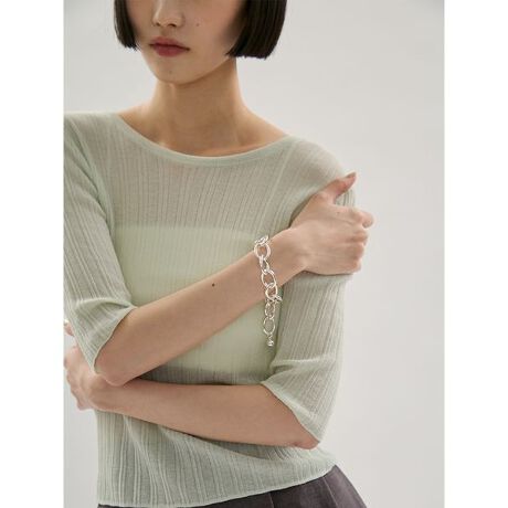 ボリュームのあるオーバルチェーンを使用したブレスレット。肌を見せることが増えるこの時期にコーディネートを格上げしてくれるようなアクセサリーです。シンプルながら存在感がありデイリーに着用できます。
