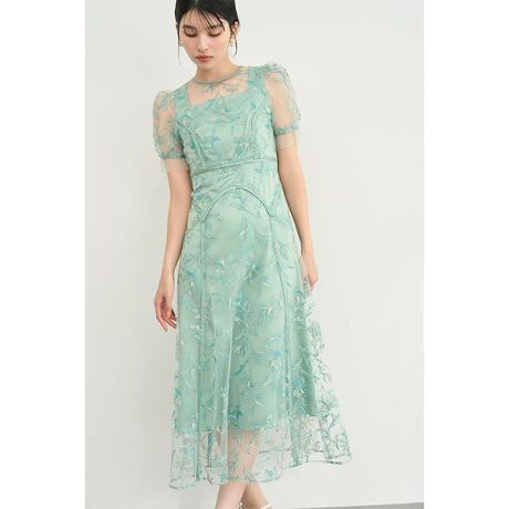 「LILY BROWN」定番のドレスを、今季はゆりとミモザをあしらったオリジナル刺繍で春らしく華やかにアップデート。人気のオケージョンシルエットをベースに、スカート部分をパネル切り替えにしてサテン生地を挟み込むことで、気品と存在感のある印象的な佇まいに仕上げました。高めに設定したウエスト切り替えがスタイルアップ効果を引き立て、袖口にはタックを入れたチュールをあしらいフェミニンなムードをプラス。特別な日を彩る一着としておすすめです。