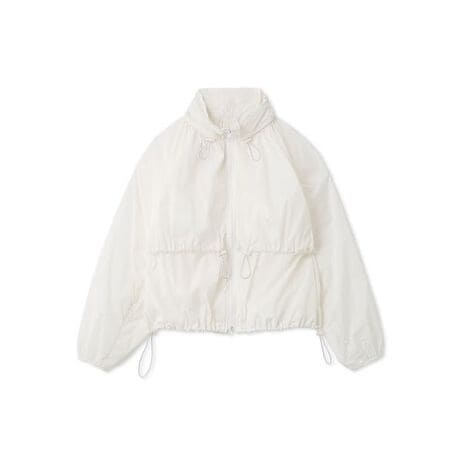 袖にはギャザーを入れて、動きやすさとシルエットのアクセントを両立。ダブルジップ仕様で温度調整やスタイリングの幅も広がり、フードは衿にスマートに収納可能。ワークアウト後の羽織りや、街中での軽快なスタイルにもフィットする、機能性とデザイン性を兼ね備えた一枚です。