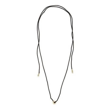 サテン紐のシンプルなネックレス。カニカンなどは使用せず、あえて端を垂らすデザインに。巻き方もアレンジが利くようにシンプルな構造に。コーディネートに合わせてチョーカーのようにつけるのもおすすめ。