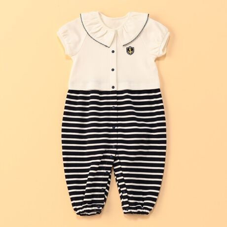 清楚なマリンスタイルに、優しい可愛らしさを添えた女の子用ツーウェイオールです。