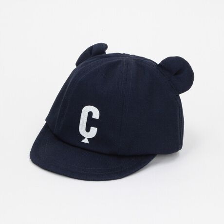 フエルトワッペンとクマ耳がデザインポイントのキャップです。