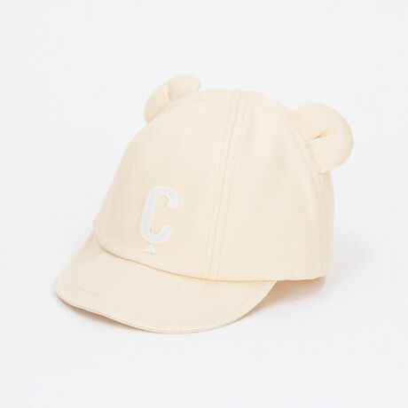 フエルトワッペンとクマ耳がデザインポイントのキャップです。