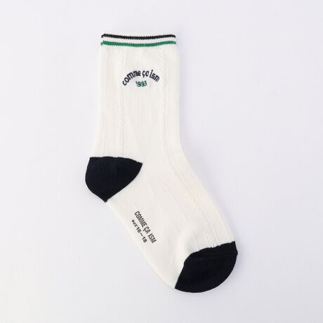細めのケーブル柄と配色使いがトラッドを感じさせるデザインです。