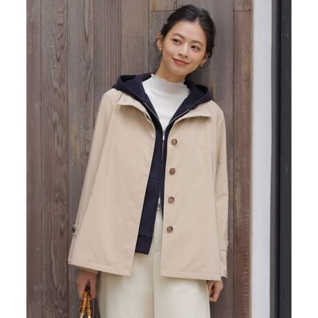 ■デザインスタンドカラーが顔まわりをすっきりと見せてくれる、上品な印象のスプリングコート。襟を折り返して着こなすこともでき、気分やシーンに合わせた表情の変化を楽しめます。動くたびにふわりと広がるAラインシルエットが、軽やかで女性らしい印象に。ヒップが隠れる安心感のある丈で、パンツにもスカートにも合わせやすく、バランスよく着こなせます。バックスタイルにはデザイン性のあるボックスプリーツを施し、さり気ないアクセントをプラス。裏地のない仕立てで、肌寒い春先から季節の変わり目まで、長く活躍してくれるアイテムです。