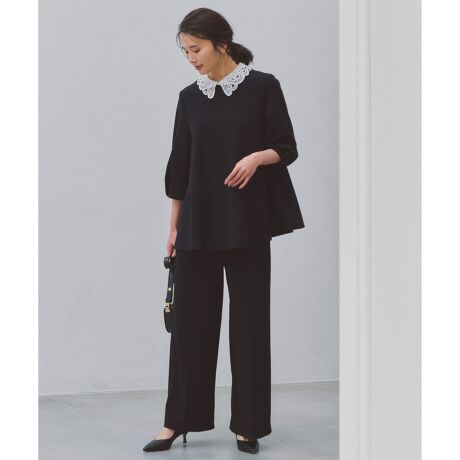 シンプルなデザインだからこそ使いやすい、ワイドストレートパンツ。腰回りはすっきり見えしながら、程よいサイジングと生地のストレッチ性により、ストレスフリーな着用感を実現。後ろウエストにはゴムが入っており、窮屈感なくご着用いただけます。程よいワイドシルエットが、着こなしに自然と馴染みます。