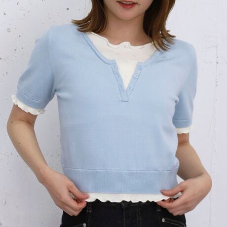 ・メロウフリルのカットソーとニットがレイヤードされたドッキングトップス