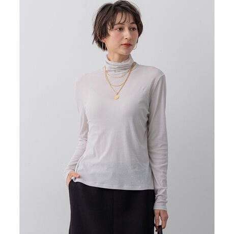さりげない透け感と程よい厚みが今年らしい、存在感のあるタートルネックのレイヤードアイテムです。ネックにフィットしすぎず、ふんわり少したるませて着用いただくと決まりの良いバランスに。ニットやスウェットの襟元からのぞかせれば、奥行きのあるこなれたスタイリングが完成します。シアーな素材感を損なわないよう、襟端を繊細なロック始末で軽く仕上げているのもこだわりポイント。 カラーは、清潔感あふれるクリアなホワイト(#001)、シックで洗練された印象のブラック(#005)、肌なじみが良く上品な雰囲気のベージュ(#033)の3色展開です。