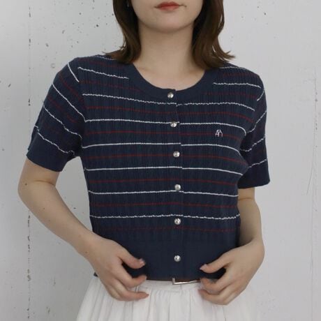 ■着痩せもトレンドも叶う、ストライプアソートハーフスリーブケーブルニットカーディガン■