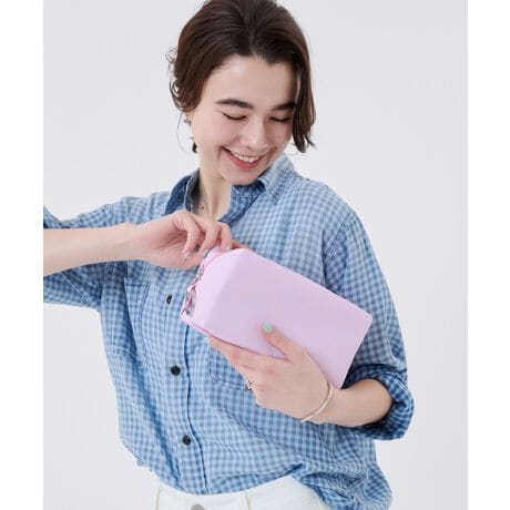 キーリング付きのマチたっぷりな大容量ポーチ。化粧品やアメニティグッズを入れて旅行用のポーチとしてや、コスメ類はもちろん、手帳・財布・貴重品・ガジェット類などバッグの中の整理にも便利。キーリングにはチャームを付けて、アレンジを楽しむのもおすすめです。
