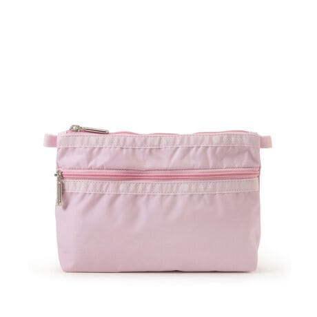 マチ付き&Wファスナーで小分けのしやすい大きめポーチ。コスメポーチとしてはもちろん、貴重品などを入れてバッグの中の整理にもおすすめ。そのまま持てばクラッチバッグとしても使いいただけます。容量たっぷりなので旅行用にも便利なスタイルです。
