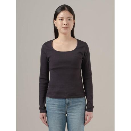 スクエアネック ロングスリーブ は、どんな時にも使える万能アイテム。デコルテを美しく見せるスクエアネック、フィット感のあるカット。