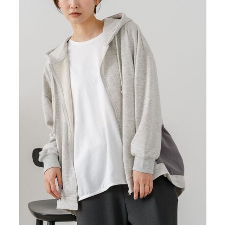コクーンシルエットが特徴のフルジップパーカー。
